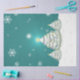 Preencha os sacos de presente de Natal com este lindo Papel de Árvore de Natal Teal Snowy. Design de papel tecidular apresenta um trio de árvores decoradas de Natal cobertas de neve contra fundo lacrimogêneo e flocos de neve em queda. Itens adicionais de presentes e feriados disponíveis com este design também.