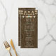 Este cartão de cardápio faz parte de uma série rústica floral de luzes convite para o casamento, colocado em tons azuis, corais, verdes, castanhos, brancos, amarelos e castanhos com um belo fundo de madeira, que lembra uma cerca de madeira e/ou um barril. Uma coroa de louros autóctone composta por bolotas, bagas, girassóis, rosa de tulipas e flores brancas, assenta-se num ramo de folhas. A parte de trás da placa pode ser personalizada com as iniciais da noiva e dentro do noivo, a árvore esculpida parece design. O menu de palavras é flanqueado por dois corações doces. Perfeito para queda ao ar livre, noite, campo, fazenda, pátio ou quintal, casamentos temáticos, festas de aniversário, janto de noivados ou noiva e chá de casais. O charmoso brilho e as luzes de fada com efeito de boque parecem brilhantes, doces, quentes e convidativas. Trabalho de arte © Chrissy H. Studios, LLC. Todos os direitos reservados.