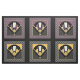 Eu criei 6 designs icônicas de ventilador em um quintal de algodão. Deco Muito Arte em 2 cores, Roxo e Amarelo. A imagem não faz as cores que fazem justiça. Estes painéis são fabulosos para costurar suas próprias almofadas ou até mesmo adicionar uma colcha. Cada painel tem 16 polegadas.