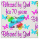Abençoado por Deus por 70 anos. Este espírito e fé recheados de 70 anos comemorará a mudança de 70 anos com este belo design de aniversário de 70 da borboleta-arco-íris em Camisetas e presentes. Aprecie a sua criança cristã de 70 anos com um presente de aniversário único e de uma espécie de 70 personalizado que ela vai tesourar todos os anos. Celebrar fazer 70 anos com um Deus elevador dançava no dia em que eu era nascer. Que esta criança de 70 anos saiba que é amada por Deus e os abençoe em abundância.