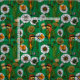 Primeiro, desenhava pássaros, borboletas e flores com tinta no papel, e depois redesenhava e coloria no Illustrator e fazia o padrão.