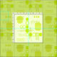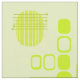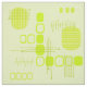 Um design moderno de abstrato-arte que teria ajustado nos anos 50. Várias formas de círculos ovais e linhas em cartreuse ou amarelo-tênis brilhante.