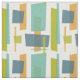 Este tecido moderno de meio século divertido apresenta cor de laranja, verde abacado, azul e turquesa vistos através de retângulos de abstrato.