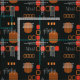 Tecido Abstrato de atômica Laranja Preto Queimado