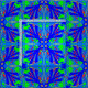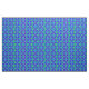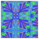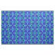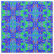 Este design de tecido floral apresenta um fascinante padrão de abstrato geométrico de uma flor azul, marcada por cores de fundo de verde, vermelho e amarelo.