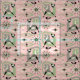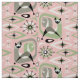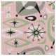 abstrato de Meio século de estilo, gatos siameses, cubos, estrelados, bumerangue, lozenges, e mais, em mocha, verde, claro, preto e uma dica de azul no rosa texturado.