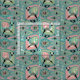 A minha ilustração vetorial original de gatos abstrato, cubos, starbursts, boomerang, lozenges, e mais, em rosa, verde, mocha, bronzeado claro e preto em azul.