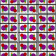Círculos de cores brilhantes erguem-se em quadradinhos de dentro preto e cinza empilhados nesta arte geométrica de abstrato de Richard H. Fay.