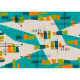 Médio do século. O tecido atômico moderno inspirou o abstrato em verde, cor de laranja e verde.