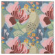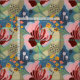 Um padrão floral abstrato exótico ousado em tons brilhantes de azul, verde, ouro e burgundy.
