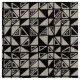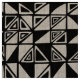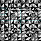 Uma mão original desenhava um padrão contínuo formado por uma grade irregular de quadrados cada um dividido diagonalmente de maneiras aleatórias criando triângulos sombreados, alguns sem sombra e outros decorados.