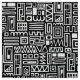 Um padrão de abstrato detalhado e atraente, formado por vários quadrados desenhados à mão, retângulos, espirais e ziguezags inspirados pela arte abstrato do século médio.