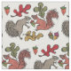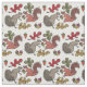 Um par de esquilos compartilha bolotas entre as coloridas folhas de carvalho. Baseado em um impressão original de alivio, esse tecido bonito iluminaria qualquer quarto de crianças.