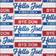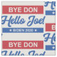 Tecido para apoiadores de Joe Biden com Bye Don Hello Joe, Biden 2020 em vermelho, branco e azul.