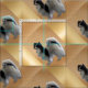 Este é um padrão divertido com um cachorro de Papillon giro em vários tons de ouro, bronze e marrom. Os padrões escuros e leves fazem uma ilusão óptica de profundidade para que pareça que o cão Papillion está parado em degraus de escada.