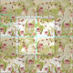 Flores, folhas e espirais, livres, de pequena escala, em manchas verdes-limões, manchas brancas e pássaros-castanhos itinerantes