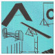 Equipamento de agilidade para cães, silhuetas mostram contra um fazer azul verde de fundo um padrão colorido para lembrar um dos seus esportes favoritos para cães. A cor de fundo não é sólida. Tem variações intencionais para criar um padrão ligeiramente quebrado.