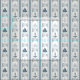 Este tecido de padrões apresenta o slogan "Ahoy it's boy" junto com gráficos náuticos como veleiros e âncoras e faixas verticais em tons de azul contra um fundo colorido creme.