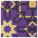 TALKIE Cotton Twill Yardage. Padrão geométrico preto e dourado em fundo colorido roxo real.