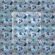 Alice em caráteres do país das maravilhas no tecido do azul e da prata. Os padrões incluem Alice, rainha dos corações, valete dos corações, duquesa, Hatter louco, coelho branco, gato de Cheshire, Tweedledum-Tweedledee, relógio, pote do chá, copo de chá e flores.