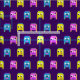 Tecido Alienígena monstros gráfico píxel amarelo rosa azu
