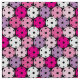 Padrão de picleball rosa, roxo e branco sobre fundo preto.