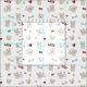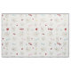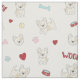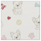 Este tecido moderno para amantes de cachorros apresenta um impressão divertido de franceses bonitos (buldocos franceses) com pegadas e ossos de cachorros cor-de-rosa e azul-claro, corações vermelhos e tigelas de comida e bolas de tênis amarelas.