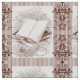 O ideal para todo o projeto para a apreciação de amantes de livro, este teste padrão caracteriza uma imagem de uma coleção estimada dos livros velhos ajustados em um fundo da listra do pino do tan do meio embellished com elementos do damasco da era do Victorian.