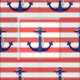 Tecido Âncora náutica com listras corais