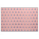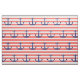 Este tecido temático náutico caracteriza uma repetição de âncoras dos azuis marinhos em um coral e em um fundo listrado branco.
