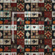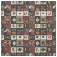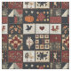 Esse tecido apresenta uma estética de patchwork de arte folclórica, organizada em uma grade de blocos quadrados que mesclam os elementos appliqué e picado. Os motifs Appliquéd incluem uma abóbora laranja ousada, um corvo preto, corações vermelhos, galinhas e florais estilizados, enquanto os blocos picados exibem padrões tradicionais de colcha geométrica como estrelas, diamantes e cruzes. O uso de vermelhos profundos, cremes e azuis/negros escuros, acentuados com tecidos padronizados como bolinhas, florais e sólidos texturizados, cria um estilo quente e rústico. Perfeito para decoração de fazendas, vida rural, artesanatos primitivos e colchões sazonais, este design incorpora o charme da colcha tradicional com um sentimento confortável e feito à mão.