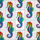 Articulação artificial, brilhante, arco-íris, cavalo de mar poligonal sobre fundo branco. Tatuagem brilhante.