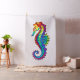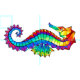 Articulação artificial, brilhante, arco-íris, cavalo de mar poligonal sobre fundo branco. Tatuagem brilhante.