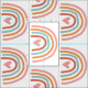 Este tecido bonito apresenta arco-íris em tons de rosa, azul e laranja com corações cor-de-rosa.