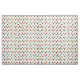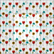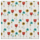 Este tecido bonito tem um padrão geral de arte nouveau inspirado no gráfico floral em vermelho, amarelo, azul turquesa, verde-claro e preto com sotaques geométricos simples sobre fundo branco.