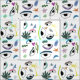 Arte dos olhos, pássaros e plantas arte moderna inspirada pelo Matisse, cor de fundo personalizada.