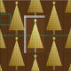 Uma tomada moderna simplificada de um clássico motif de árvore de Natal, gradiente de aparência de folha de ouro/brocade em um antigo design de papel de parede floral em um fundo castanho de chocolate profundo