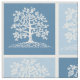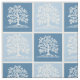 Árvore da vida com pássaros Mesma imagem repetida em Design azul médio e azul claro para uma colcha de árvore da família ou borda de colcha?