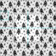 Este tecido de Natal preto e branco divertido apresenta uma árvore de Natal esbranquiçada e um padrão de floco de neve.