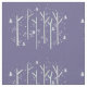 Um design capricho divertido com uma floresta de pássaros em fundo roxo.