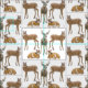 O teste padrão original das belas artes de um branco atou a família dos cervos pelo artista e pelo desenhista Carolyn McFann do estúdio de ronrom de dois gatos impresso na qualidade e no tecido customizável para fãs do Whitetail.