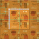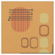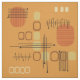Um design moderno de abstrato-arte que teria ajustado nos anos 50. Várias formas de círculos ovais e linhas em ocre, laranja e ouro.