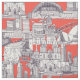 Toile de Jouy australiana, originalmente desenhada à tinta. Inclui a Casa de Ópera do porto de Sydney e o Luna Park, Templo de Perth, horizonte de Melbourne, Chinatown de Adelaide, Museu Marítimo de Townsville, farol de Wollongong. Recife do coração, praia de Bondi.