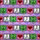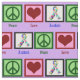 Tecido roxo bonito com sinais de paz, corações e a fita multi-colorida da consciência do autismo para as pessoas autísticas que caem no espectro.