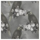 Este design, inspirado no gótico, mostra pássaros pretos com coroas prateadas sentadas sobre flores pretas e brancas em um fundo de cinza.