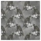 Tecido Aves Negras e Flores Brancas em Cinzas
