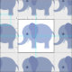 Material bonito do tecido com elefantes. Os elefantes azuis bonito projetam no tecido que olharia grande no berçário.