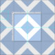 Um teste padrão geométrico legal de formas azuis e brancas de bloqueio da luz - do diamante. Os diamantes brancos cada um contêm um diamante pequeno dos azuis bebés fazendo azul pálido a cor dominante do design do tecido.