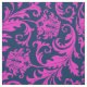 Tecido Azul Elegante e Damascos Florais Rosa Quente