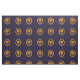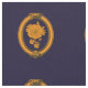 Um design sofisticado e elegante com um padrão de quadros ovais decorativos em ouro com dentro de rosas ouros, espalhados sobre um fundo azul real.